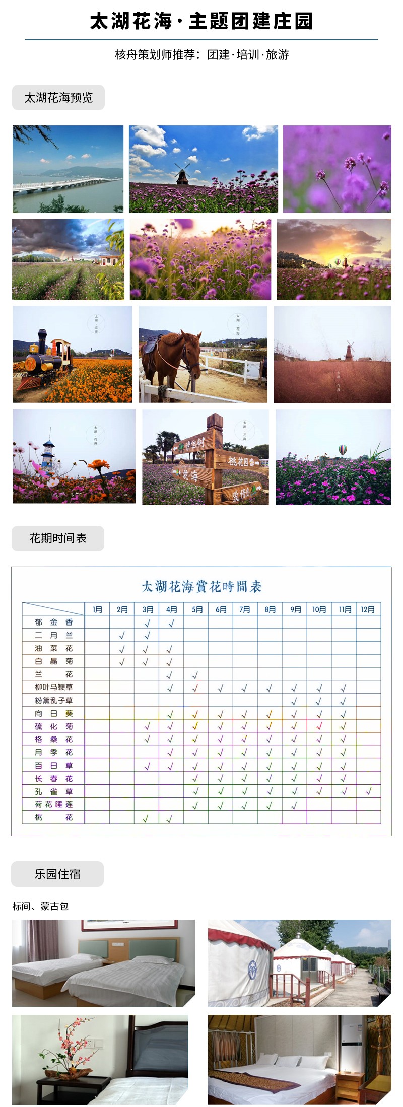 核舟蘇州拓展基地—太湖花海位于蘇州市吳中區金庭鎮西山太湖邊,這里一年四季鮮花不斷,形成震撼的花海主題。景區觀花規模大、品種多,是蘇州市規模較大的草花觀賞基地。