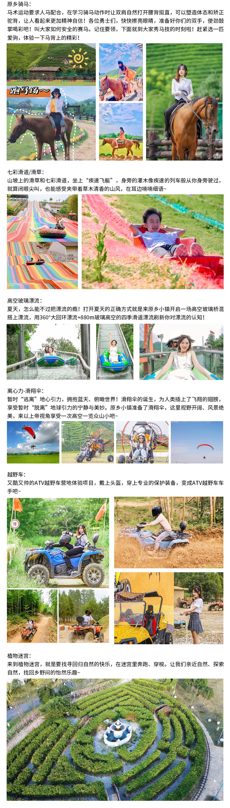 核舟安吉拓展基地-原鄉小鎮地處莫干山脈北麓的湖州吳興妙西的原鄉探險公園,按照“一館兩園五區”布局,建有全亞洲最大,集蝴蝶養殖、觀賞、放飛、科普教育為一體的生態科普館;坐擁千畝梅花觀賞園,沿山勢建有全國最長的原枕木觀光棧道。內設288米長88米落差及酷炫5D特效的玻璃橋、玻璃滑道、彩虹滑草、高標準馬場、軌道長約1500米的童話小火車等項目,是華東首個以運動探險為主題國家級AAAA景區。