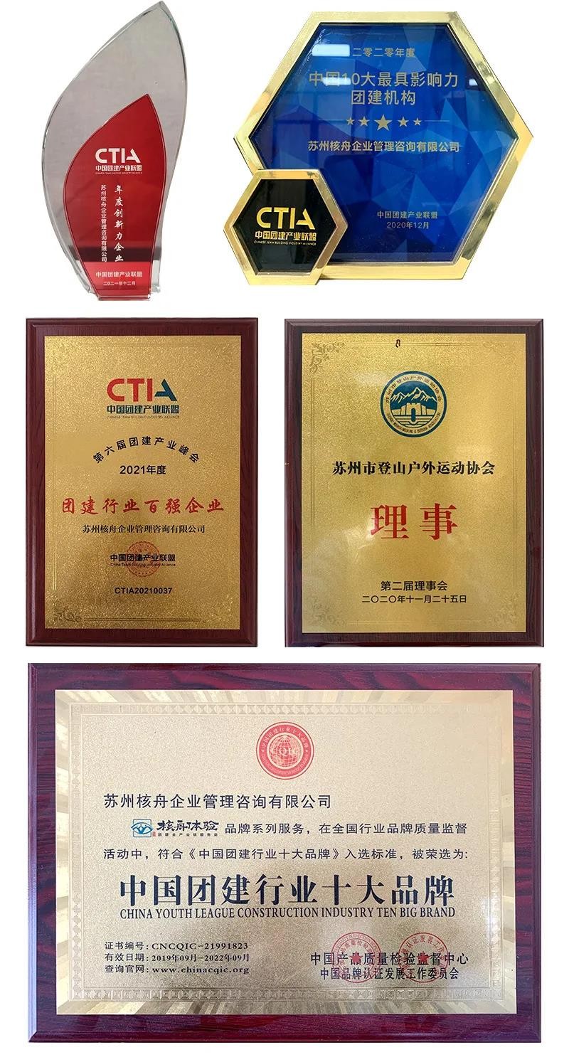 核舟體驗深耕行業11年,通過不斷努力,先后獲得“2020年度中國10大最具影響力團建機構”、“中國團建行業十大品牌”、“蘇州市登山戶外運動協會理事”“2021年度創新力企業”“2021年度團建行業百強企業”等稱號。