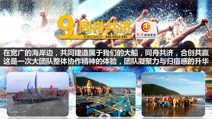 同舟共濟:在寬廣的海岸邊,共同建造屬于我們的大船,同舟共濟,合創共贏,這是一次大團隊整體協作精神的體驗,團隊凝聚力與歸宿感的升華