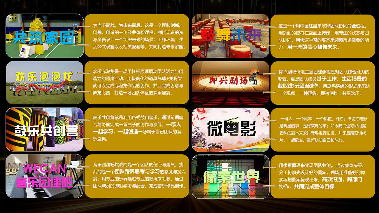 榮耀時(shí)刻多種特色主題的搭配組合,制勝于團(tuán)隊(duì)的創(chuàng)意與規(guī)劃,決戰(zhàn)于團(tuán)隊(duì)的協(xié)同與細(xì)節(jié),結(jié)果于團(tuán)隊(duì)的執(zhí)行與管控,一起進(jìn)入榮耀之旅,共同見(jiàn)證榮耀時(shí)刻。